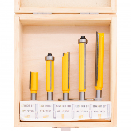 300.008 Набор фрез DELTA TOOLS пазовых/обгонных фрез 5шт. хв. S=8 применяется для выполнения различных видов фрезерных работ, таких как создание пазов, вырезание отверстий, контурная обработка и других операций.