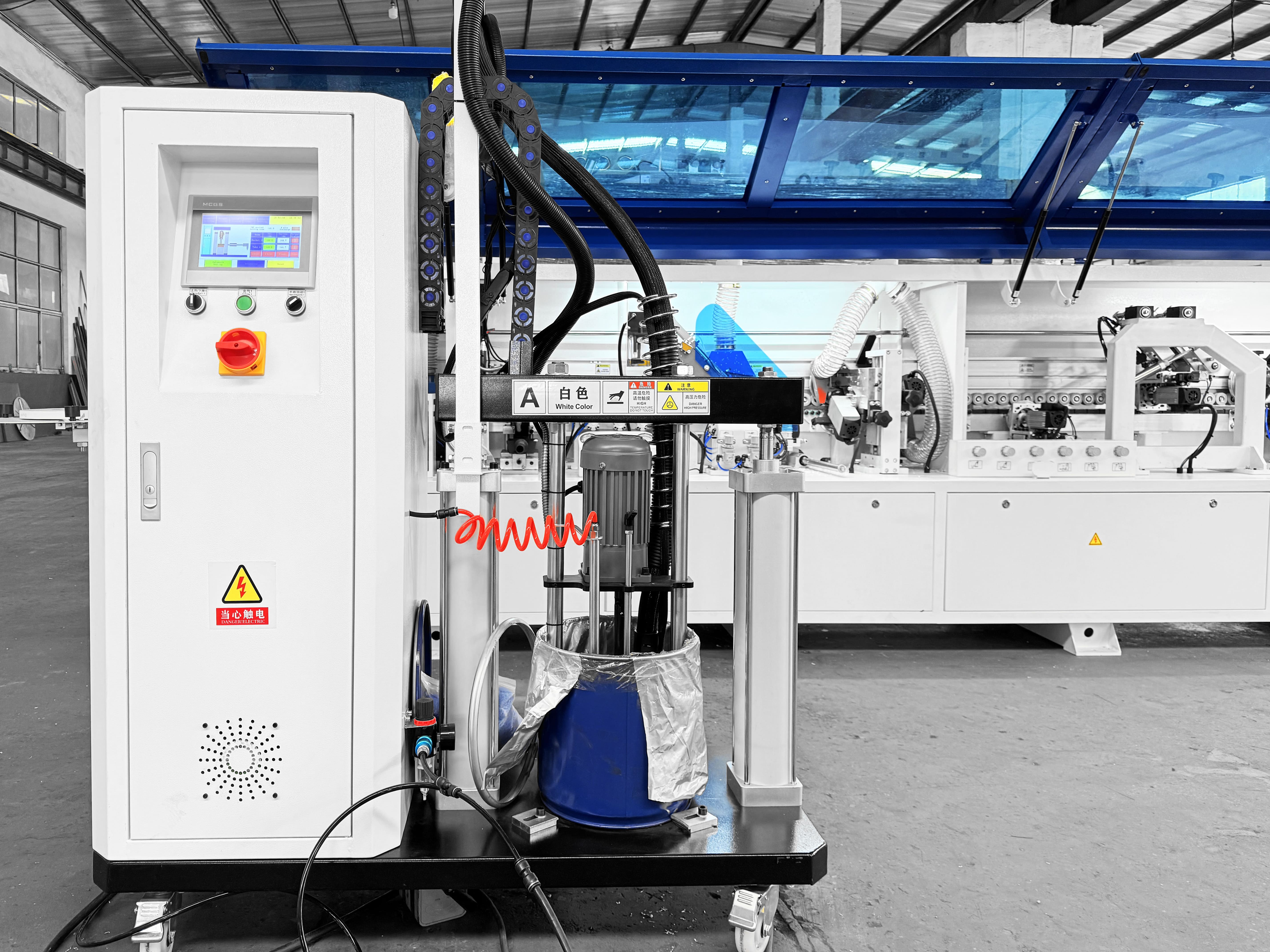 Предназначен для облицовывания прямолинейных кромок плитных материалов рулонными кромками АБС, ПВХ и полосовым кромочным материалом.