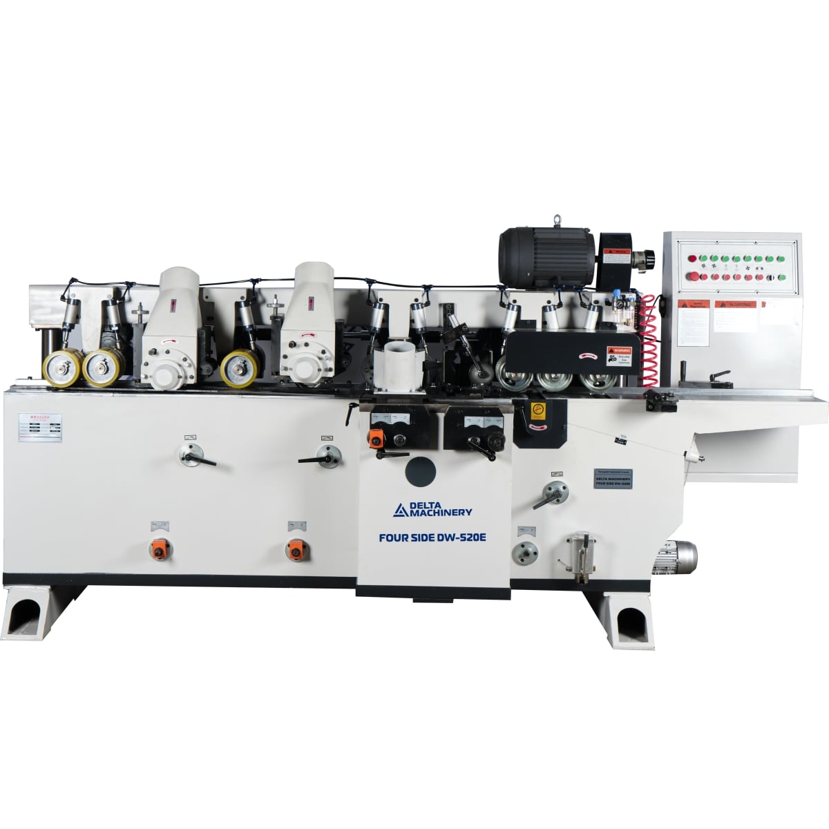 Четырёхсторонний станок DELTAMACHINERY FOUR SIDE DW-520H (5 шпинделей) предназначен для высокоточной четырехсторонней обработки деревянной заготовки с целью получения высококачественных изделий за один проход. После обработки на 4-х сторонних станках отпадает необходимость в последующем шлифовании профилированных и строганных поверхностей.