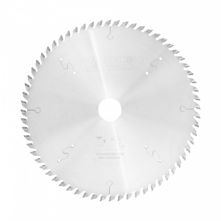 Дисковая пила DELTA TOOLS 200x3,2/2,2x25,4 Z=64 трапеция для ФРС предназначена для пиления биламинированных панелей с меламиновыми покрытием и не облицованных плит ДСП, MDF на форматно-раскроечных станках с использованием подрезной пилы.