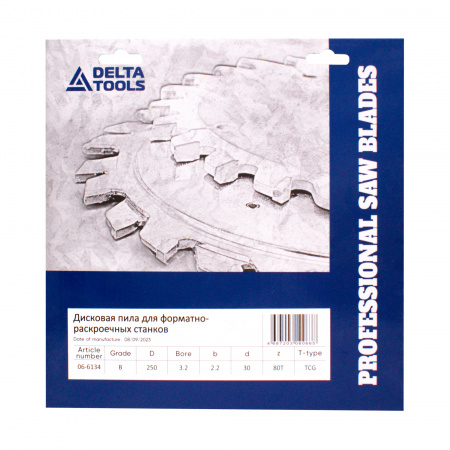 Дисковая пила DELTA TOOLS 250x3,2/2,2x30 Z=80 трапеция 5гр. для ФРС предназначена для пиления биламинированных панелей с меламиновыми покрытием и не облицованных плит ДСП, MDF на форматно-раскроечных станках с использованием подрезной пилы.