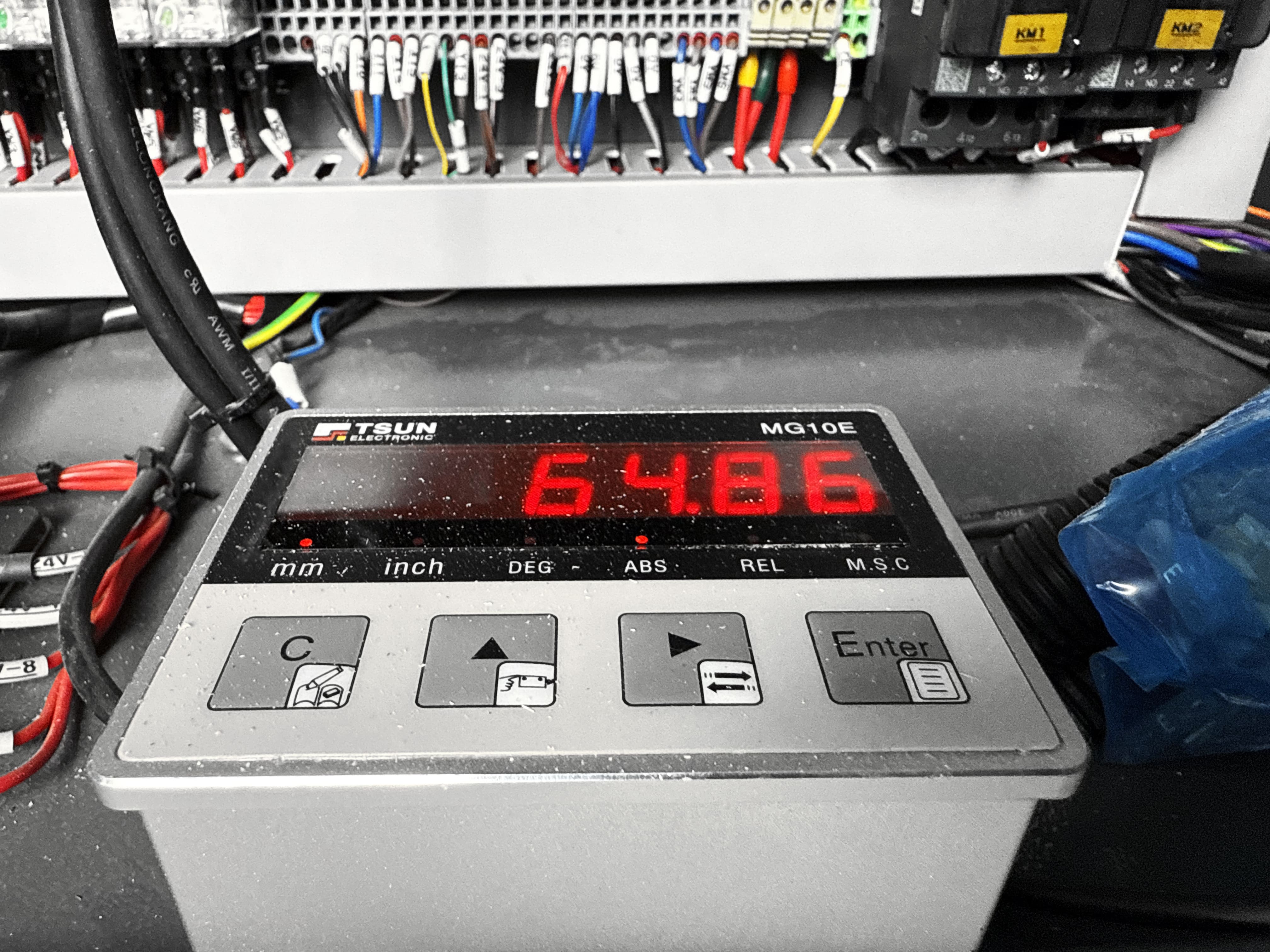 На линейке установлено два перекидных упора, один из них оснащен блоком цифровой индикации, что позволяют быстро и точно настроить станок на необходимый размер. Это исключает человеческий фактор и сводит кол-во брака к нулю.