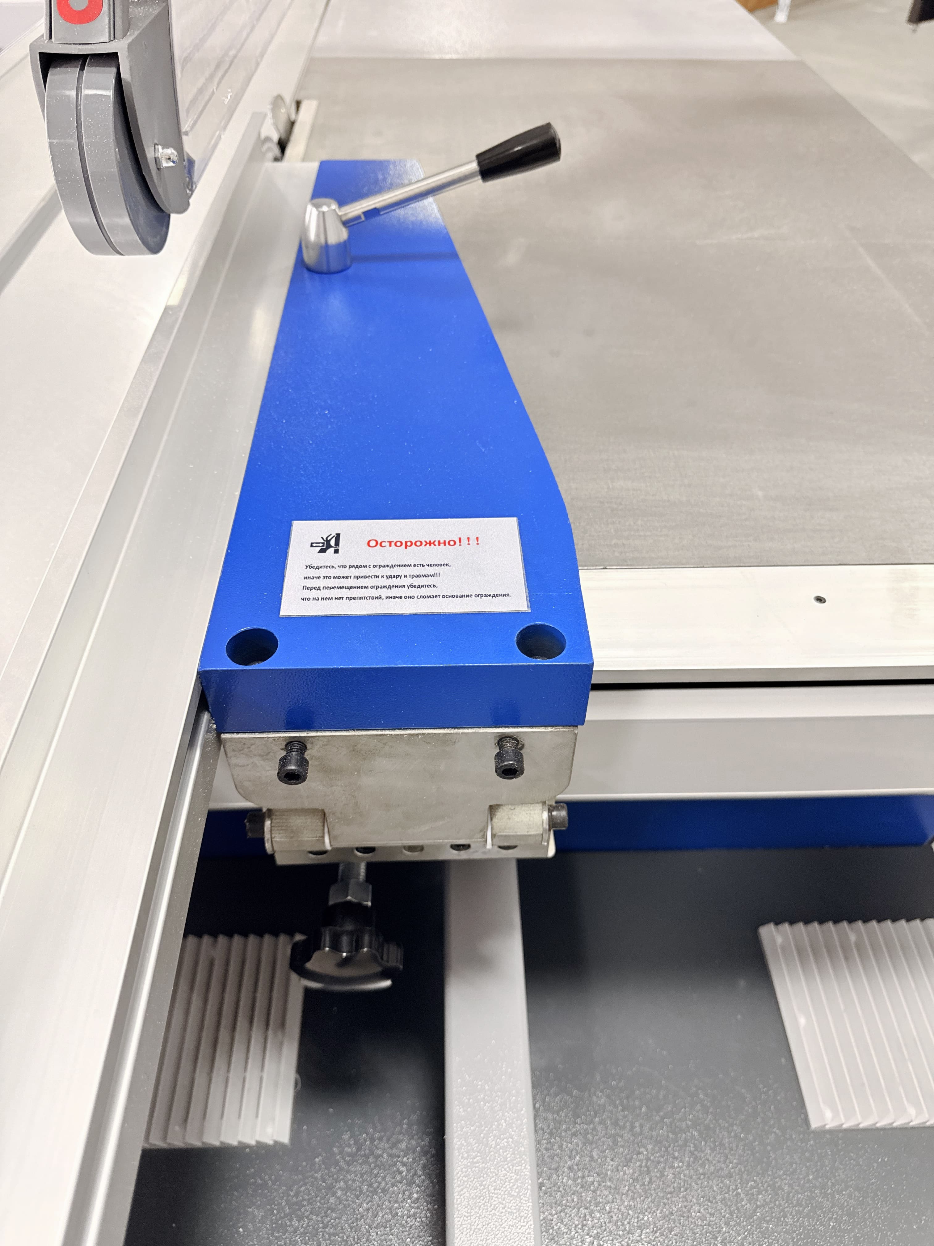 Поперечная линейка станка жестко фиксируется к поддерживающему столу в двух точках под углом 90 градусов к линии пропила. Настраивается единожды и не требует дополнительных регулировок. Это исключает смещение линейки во время работы и гарантирует правильную геометрию раскроя.
