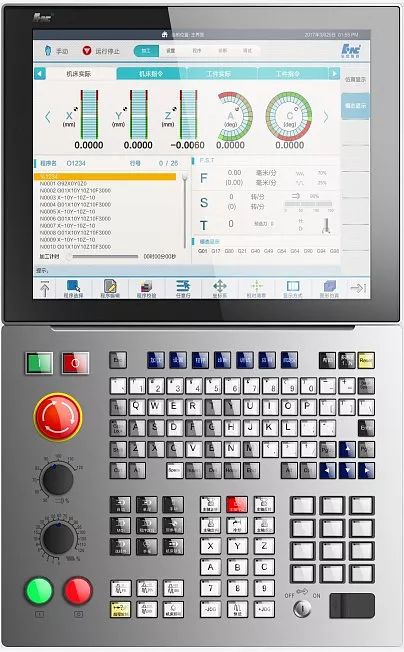 Стойка ЧПУ оснащается 17-дюймовым экраном с разрешением 1280*1024 в стандартной комплектации. Опционально устанавливается цветной сенсорный ЖК-монитор 17 дюймов. Панель выполнена из алюминиевого сплава. Для ввода команд и привязки горячих клавиш предназначена клавиатура MCP.