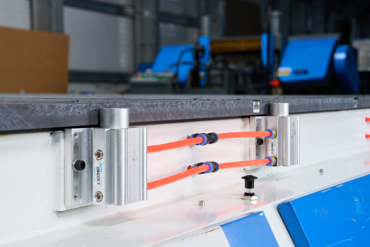 Комбинированный вакуумный стол с 8-ю разделяемыми зонами оснащен дополнительными Т слотами для возможности механического удерживания материалов.