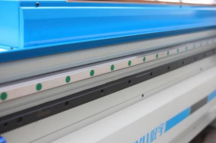 Станина станка выполнена из толстостенного метала с большим количеством продольных и поперечных ребер жесткости, что обеспечивают стабильную работу и превосходную виброустойчивость станка. Механическая обработка монтажных плоскостей производится на портальном обрабатывающем центре производства Тайвань. Допуск на прямолинейность монтажной поверхности направляющей рейки/стойки после механической обработки составляет ≤0,02 мм (по всей длине). Корпус станины и портал дважды обрабатывается на обрабатывающем центре: (1) Операция фрезерования + сверление (2) снятие технологической фаски + нарезание резьбы + тонкое фрезерование, что обеспечивает идеальную сборку и безупречную точность в работе станка.