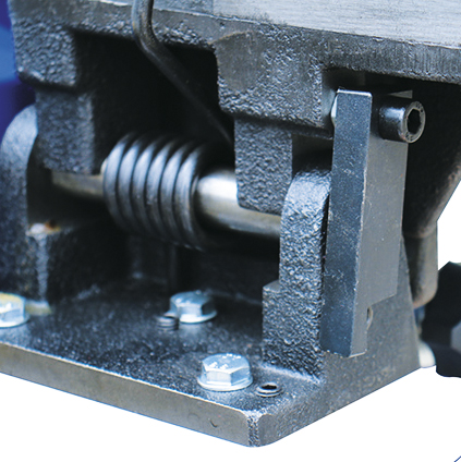 Столы откидываются поочередно, и базируются на специальных упорах, которые предотвращают повреждение станины станка. Принимающий фуговальный стол снабжен механизмом стопорения.