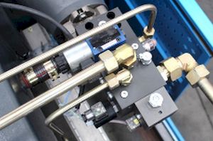 Листогибочный гидравлический пресс MetalTec HBM 125/2500  укомплектован выносным, ножным модулем управления. Модуль имеет две педали – для подачи верхней плиты вниз, и отвода в первоначальное положение – вверх.