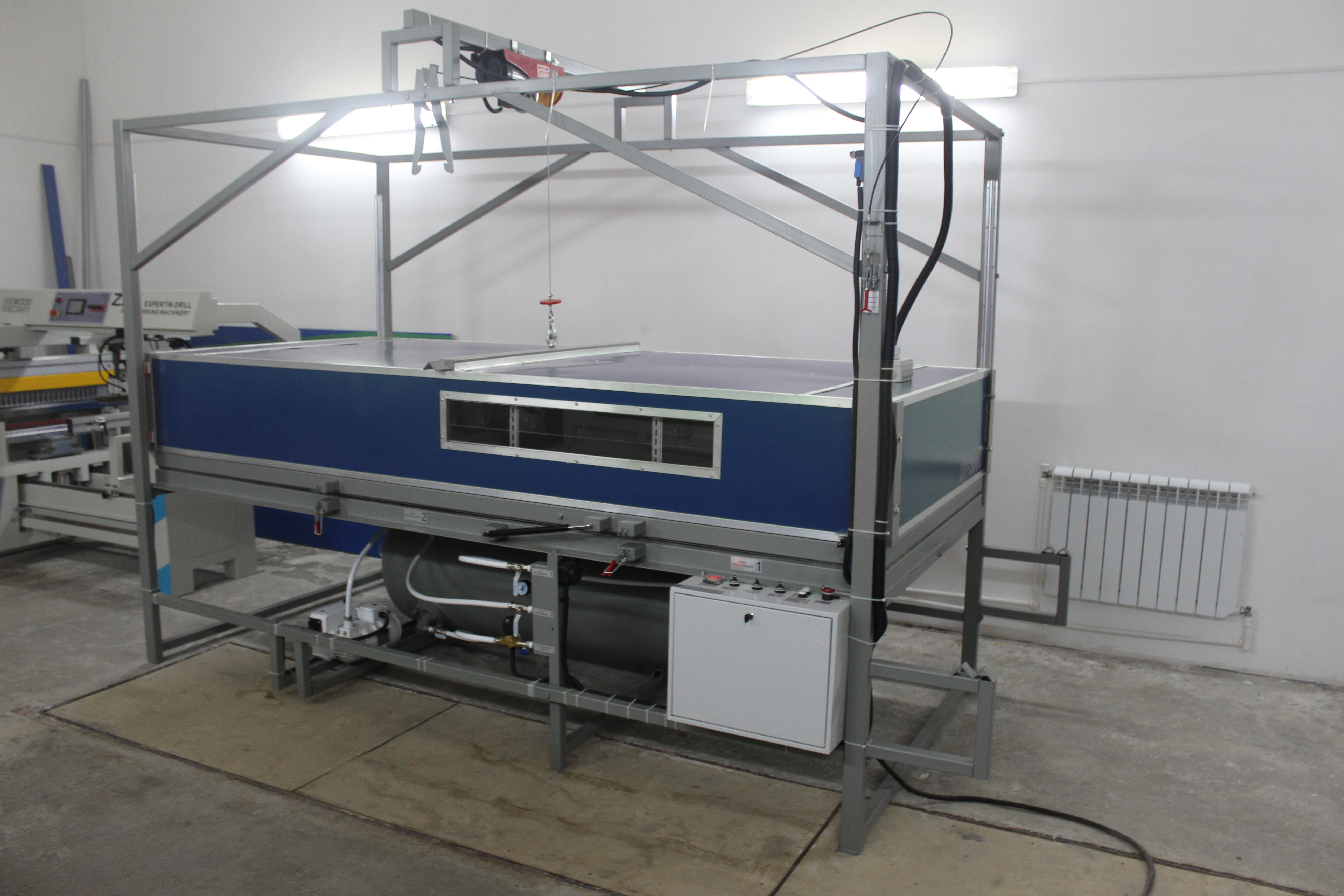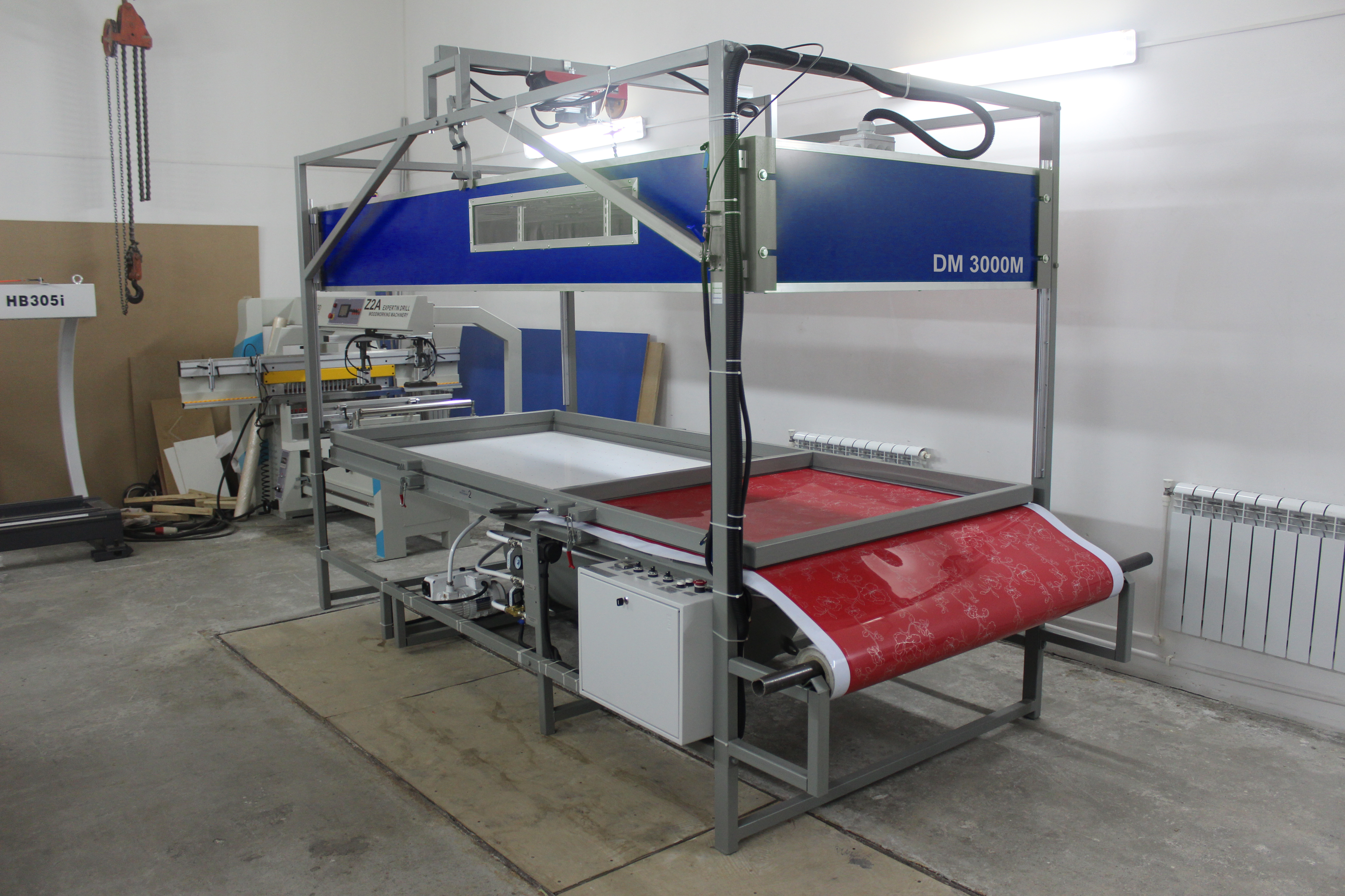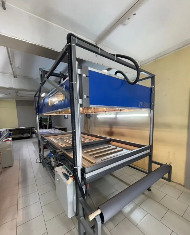 Предназначен для облицовки пленками ПВХ, ABS пластиком, шпоном (искусственным и натуральным) мебельных фасадов, дверей, дверных накладок, карнизов, декоративных панелей на стены и двери шкафов купе со сложным рельефом, с помощью системы нагрева и вакуумной технологии.