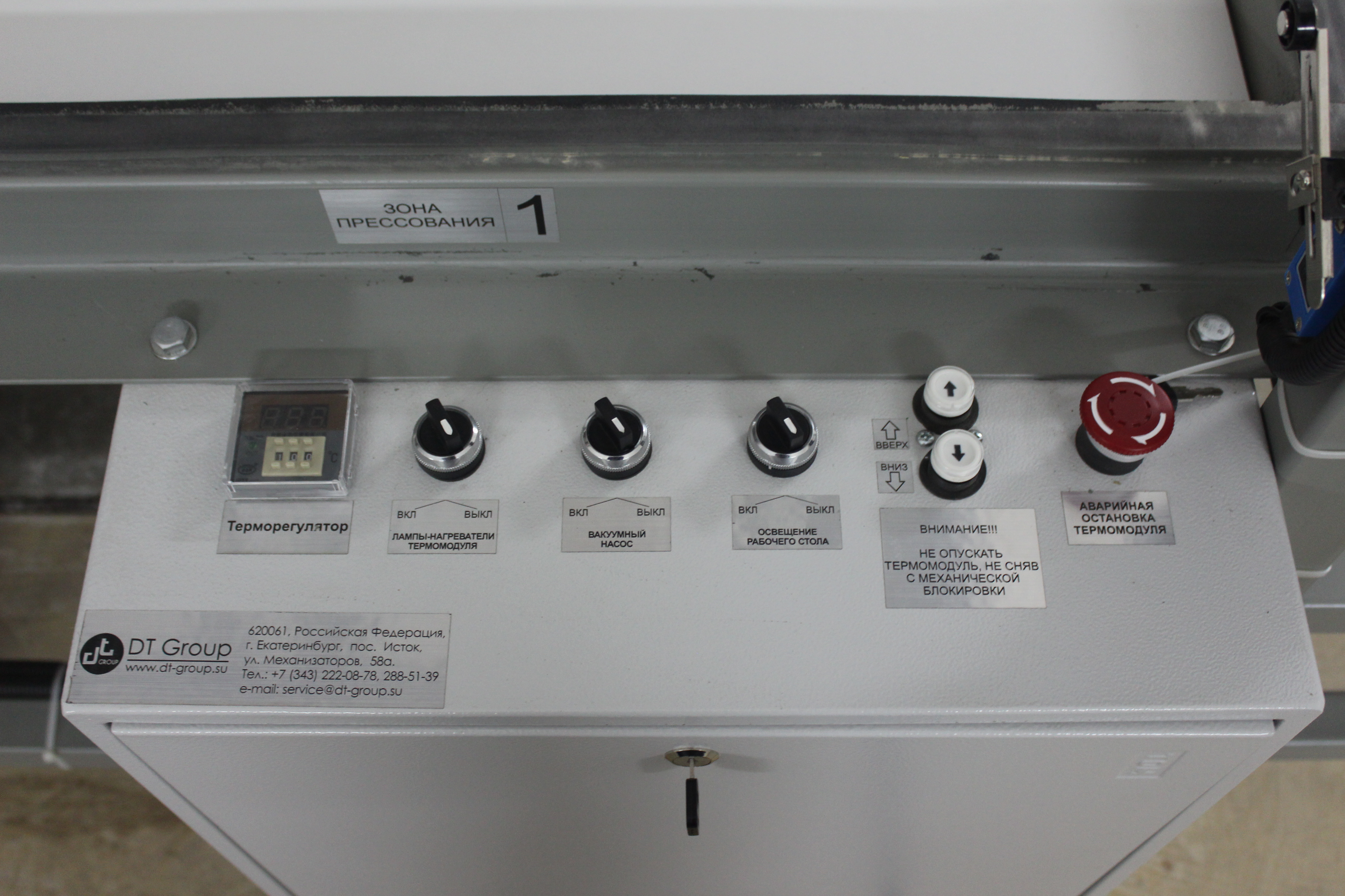 Электрошкаф и пульт управления прессом может быть оснащен различными микропроцессорными контроллерами стабилизации и регуляции вакуума и температуры по желанию заказчика. Режим нагрева происходит автоматически при заданной оператором температуре.