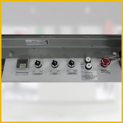 На прессе используются высокоэффективные и экономичные кварцевые галогеновые термоизлучатели (лампы КГТ).Всего на станке установлено 32 шт - это позволяет добиться плавного нагрева (актуально для тонких пленок).