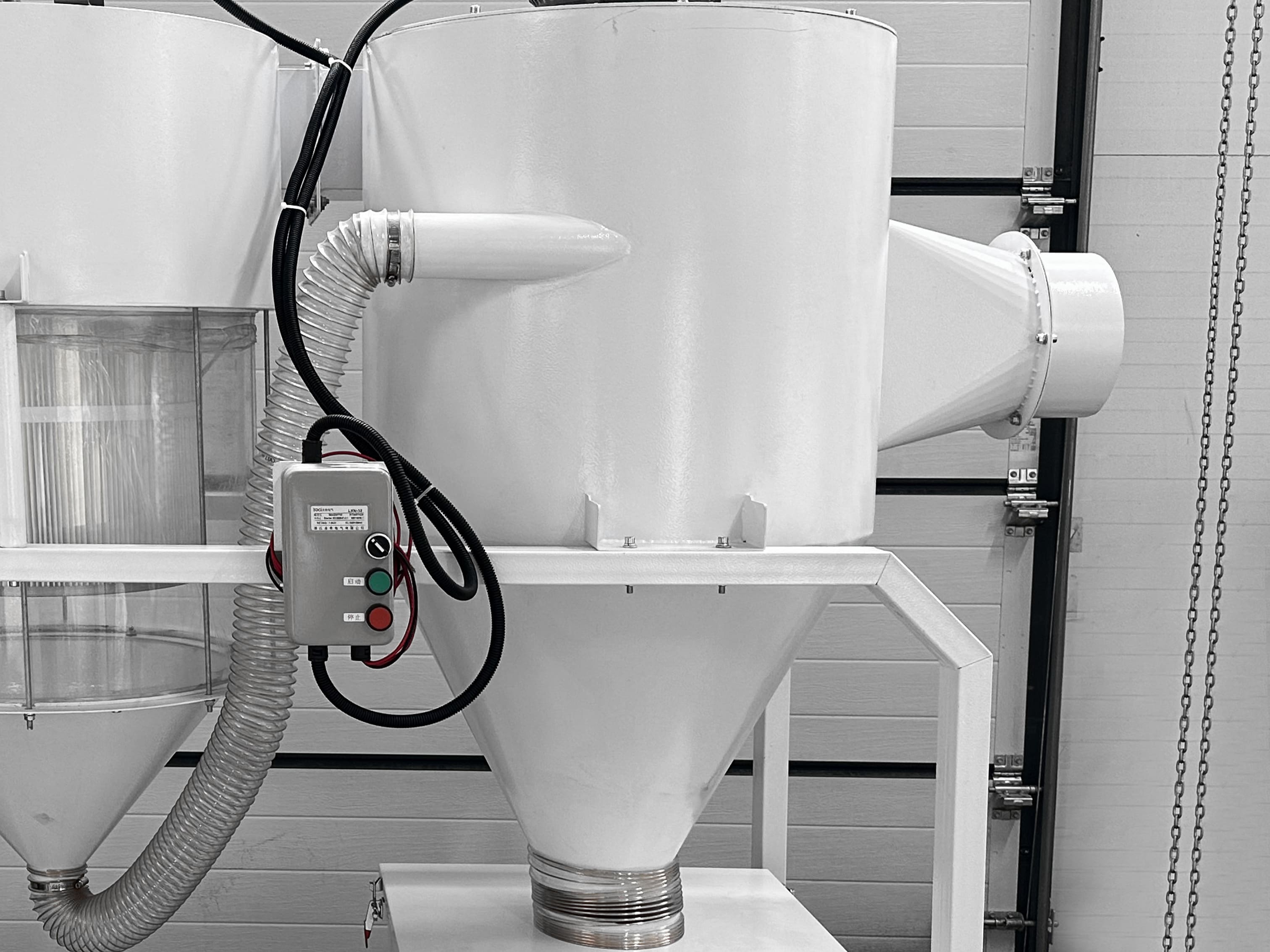 Устанавливается внутри производственных помещений в основном на мебельных и деревообрабатывающих производствах, а также в цехах обработки камня, пластмассы, камня, бумаги и т.п.