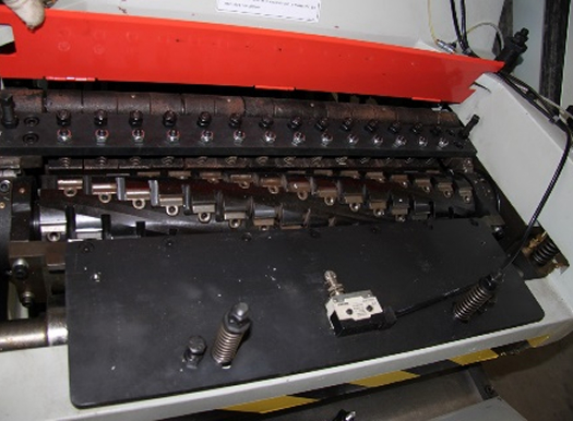 К верхнему ножевому валу доступ возможен через верхнюю крышку. Концевик исключает запуск станка, что обеспечивает безопасную замену ножей.