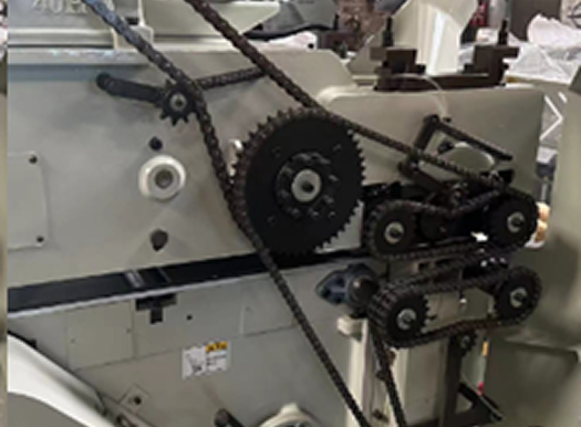 ➤ Подающие ролики и ролики стола приводятся в движение цепной передачей для обеспечения надежной равномерной подачи.