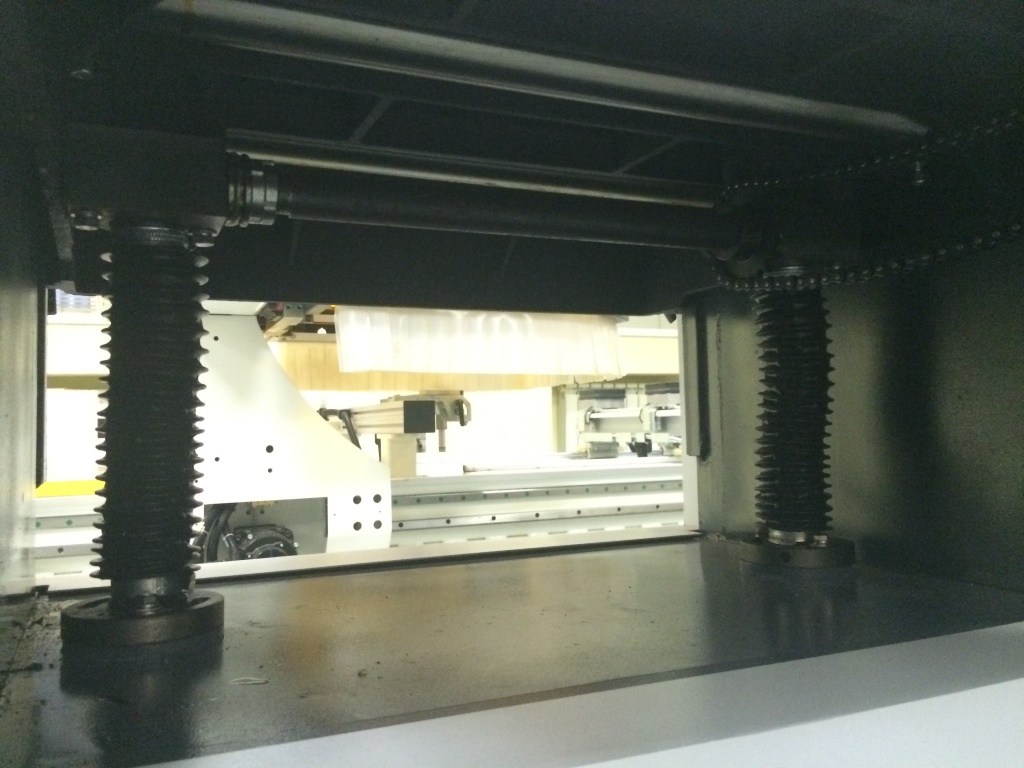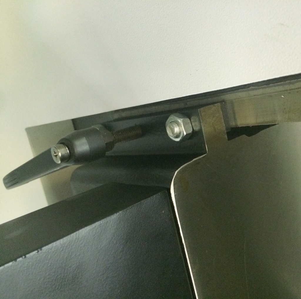 Стол перемещается в 4-х направляющих, что исключает его перекос. Жесткая фиксация стола осуществляется с помощью рукояток.