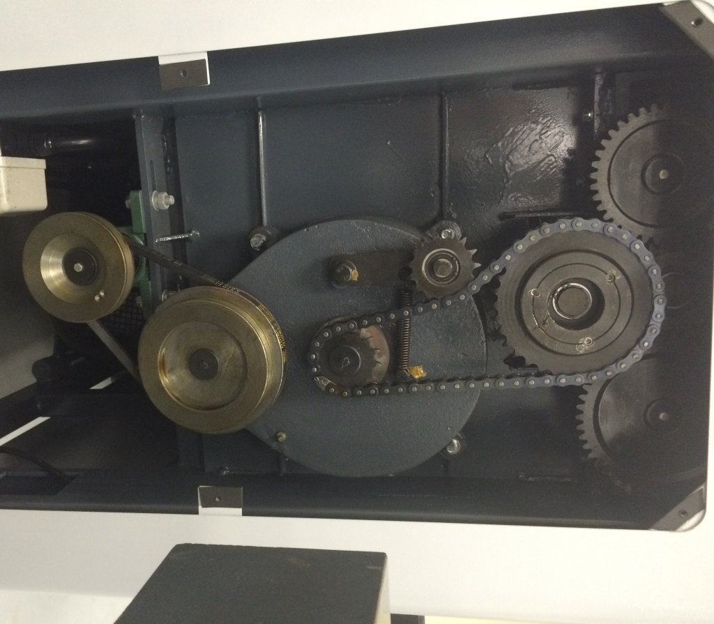 Осуществляется посредством цепной и шестеренчатой передачи.
