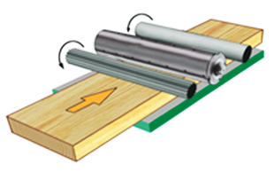 • Рабочий стол станка оснащен двумя гладкими роликами, которые исключают застревание заготовки при обработке.