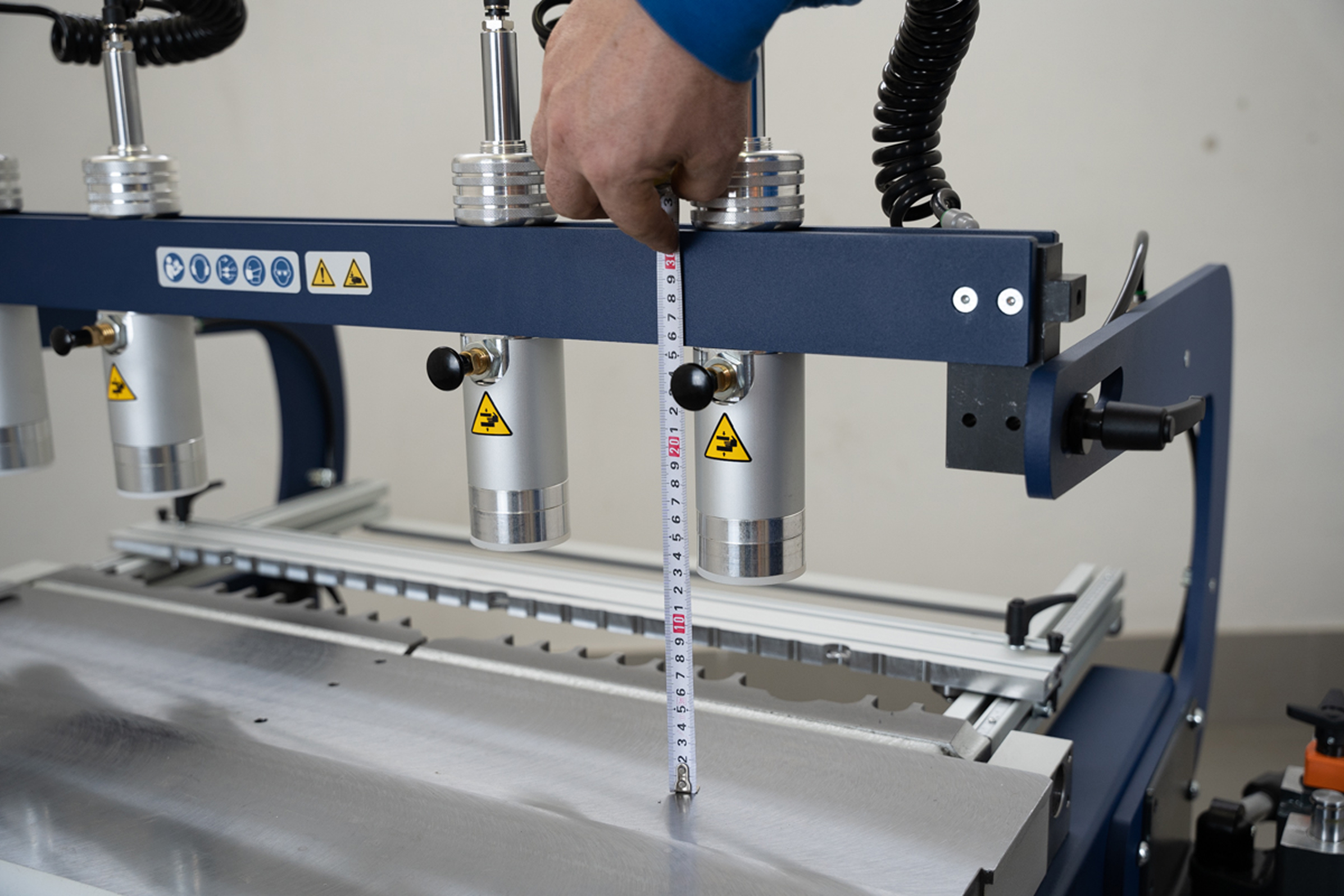 Пневматические прижимы для быстрого фиксирования заготовки исключают необходимость ручной регулировки.