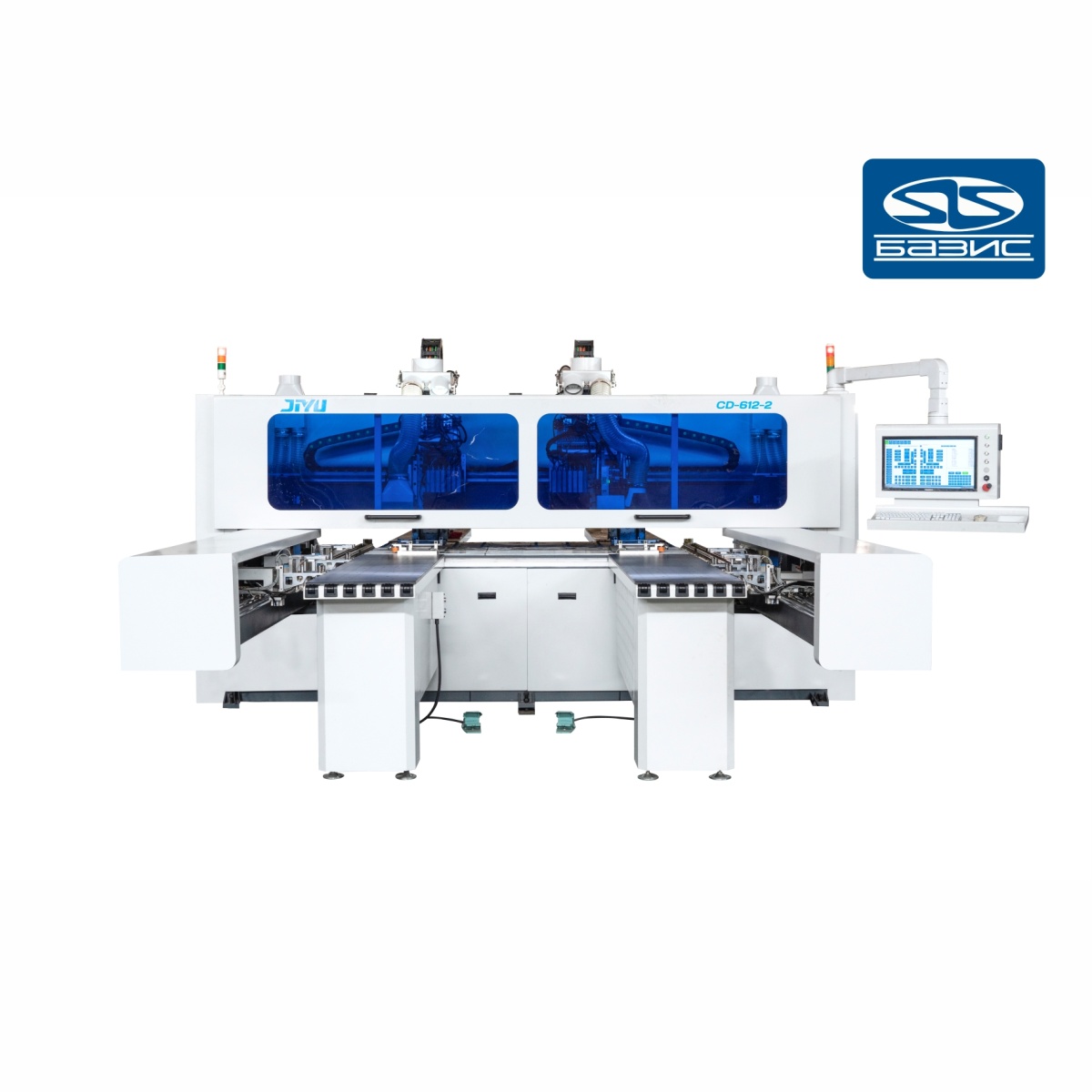 Использование промышленного управляющего компьютера, идеально сочетающего в себе различные программы для оптимизации карт сверления и фрезеровки, возможность работы со сканером штрих-кода, в разы ускоряет производительность технологического процесса. Выполнение любых карт присадки с шести сторон за один проход детали, фрезерование прямых и криволинейных пазов с помощью фрезерных агрегатов. Данная модель, предназначена для серийного производства и имеет возможность одновременной работы с двумя деталями с правой и левой линейки одновременно, что в разы увеличивает производительность по сравнению с классическим исполнением станка с одной линейкой