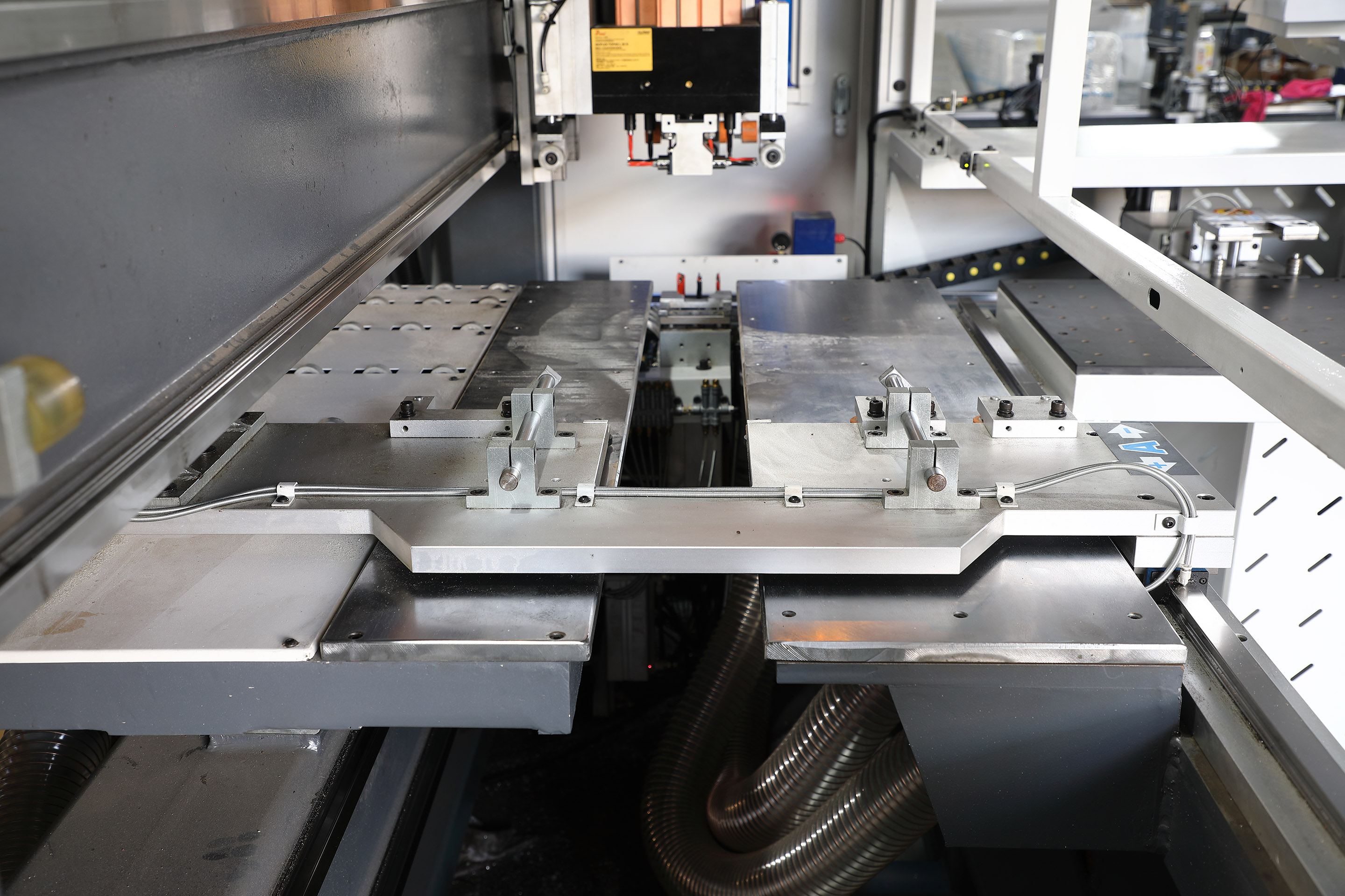 Предназначен для высокоточного сверления сквозных и глухих отверстий в торцах и плоскостях мебельных щитов. Использование промышленного управляющего компьютера, идеально сочетающего в себе различные программы для оптимизации карт сверления и фрезеровки, возможность работы со сканером штрих-кода, в разы ускоряет производительность технологического процесса. Выполнение любых карт присадки с шести сторон за один проход детали, фрезерование прямых и криволинейных пазов с помощью верхнего и нижнего фрезерных агрегатов. Надежная конструкция из двух пневматических захватов надежно удерживает и точно перемещает деталь в процессе обработки.