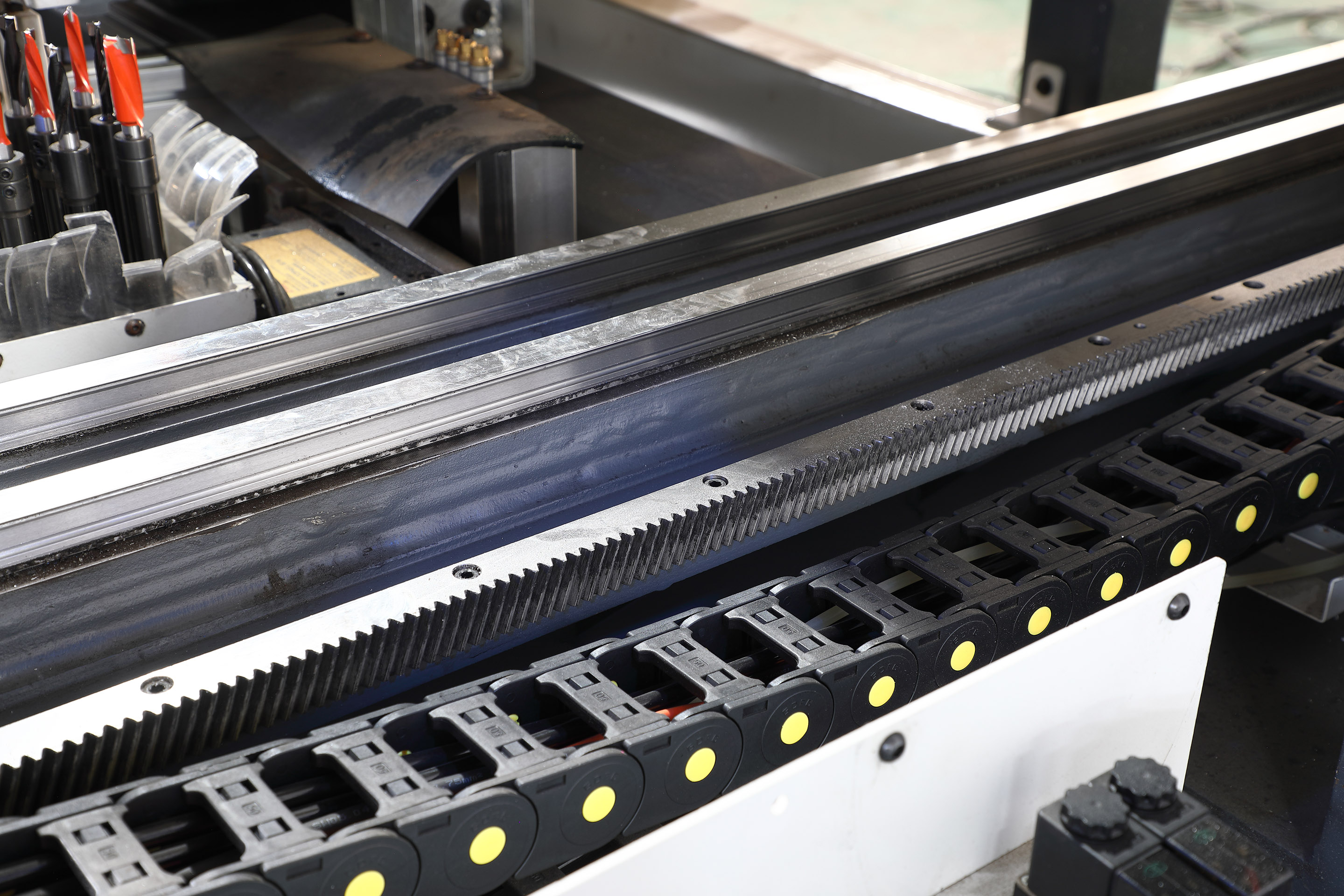 Ось Y перемещается по косозубой рейке, которая обладает большой несущей способностью, стабильно работает на высоких скоростях и обладает более высокой точностью
