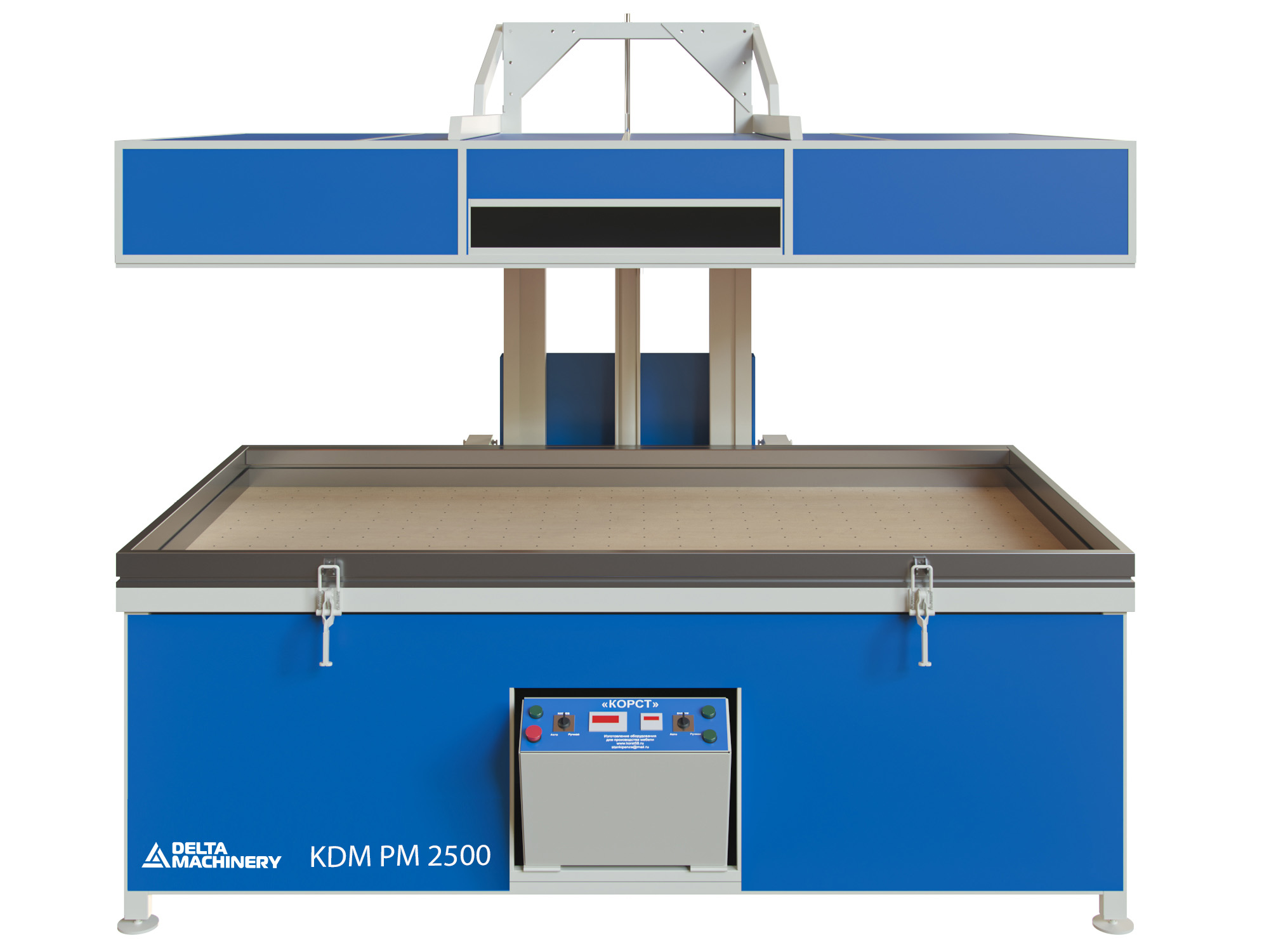 Вакуумный пресс KDM PM-2500 спроектирован и изготовлен для небольших цехов, которые занимаются производством мебели с применением МДФ фасадов, и организаций, которые занимаются изготовлением дверей.