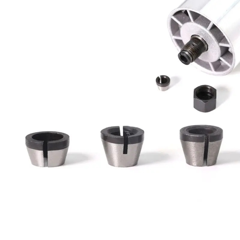 Цанговый патрон для кромочных фрезеров с диаметром хвостовика 6 мм. Данный цанговый патрон позволяет расширить спектр фрез, применяемых с ручным фрезером.