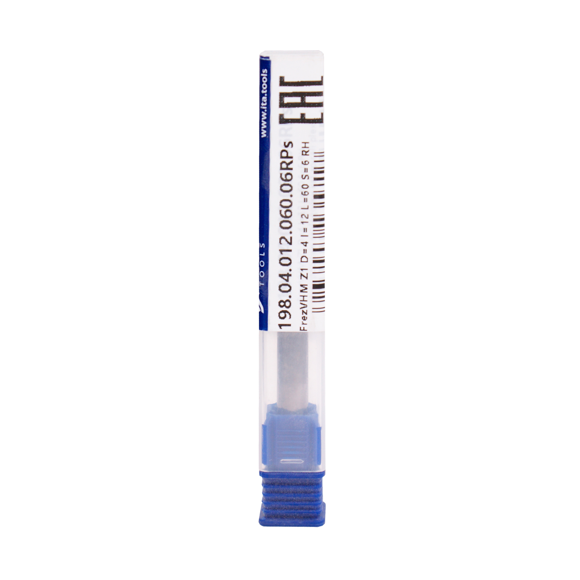 198.04.012.060.06RPs Фреза спиральная VHM Z1 D=4 I=12 L=60 S=6 RH (позитив) оргстекло и пласти plexi